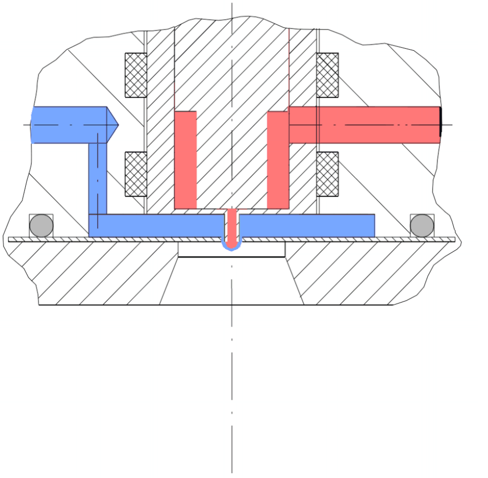 Beschreibung Die Inducap®-CORE Technologie nutzt die Kraftwirkung hydraulischer Impulse in Form von Druckwellen, um vorzugsweise kugelförmige Kapseln (Mikrokapseln, Mikrokugeln) in monodisperser Größenverteilung zu erzeugen. Hierbei werden die flüssigen Ausgangsmedien bestehend aus Kernflüssigkeit (Wirkstoff) und Hüllflüssigkeit (Kapselmantel) durch wechselnde Impulse mit hoher Bewegungsfrequenz in einzelne Flüssigkeitsvolumina (Precursorteilchen) portioniert. Anschließend gelangen die Precursorteilchen in eine Umgebung, die die Verfestigung der Hüllflüssigkeit und Ausbildung zu einzelnen Mikrokapseln bewirkt. Die in Form der nunmehr ausgehärteten Mikrokapseln vorliegenden Ausgangsmedien weisen je nach chemischer Zusammensetzung sowie Form, Größe und Verteilung vorteilhafte chemische, biologische oder physikalische Eigenschaften auf. Kennzeichnend für diese neue Technologie zur Mikroverkapselung ist unter anderem die konstruktive Sonderausführung der in der Flüssigkeit beweglich eingesetzten Bauteile (Aktoren). Durch konstruktive Maßnahmen erzeugen die Aktoren lediglich die hydraulischen Impulse unter Ausstoß kleinster Mikrokapseln und wirken nicht wie die Verdrängerelemente volumetrischer Pumpen. Im Umkehrschluss hat eine Druckbeaufschlagung auch keinen Einfluss auf die freie, exakte Beweglichkeit der Aktoren. Während der pulsierenden Durchströmung der Kernflüssigkeit durch die äußere Hüllflüssigkeit wird zudem nur ein im Verhältnis zur Kernflüssigkeit geringer Anteil an Hüllflüssigkeit mitgezogen und bildet hierdurch einen dünnen, umhüllenden Flüssigkeitsfilm aus. Mit der Inducap®-CORE Mikroverkapselung kann daher auf einfache Art und Weise neben der Verarbeitung niedrigviskoser Flüssigkeiten auch eine Verarbeitung hochviskoser Fluide bzw. zähflüssiger Pasten unter großem Überdruck erfolgen.
