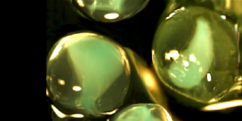 Gelatinekapseln mit flüssigem Wirkstoffkern in Kühlbad (Öl)
